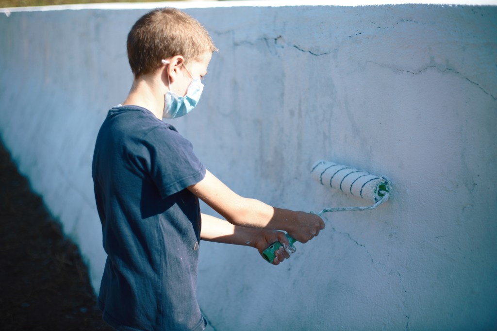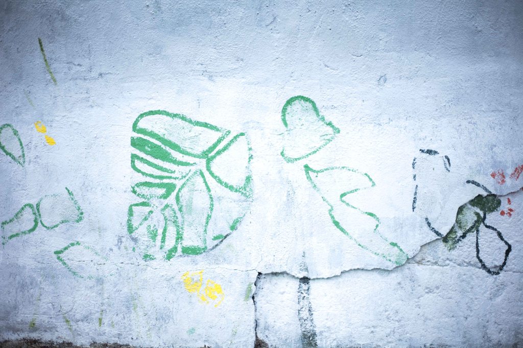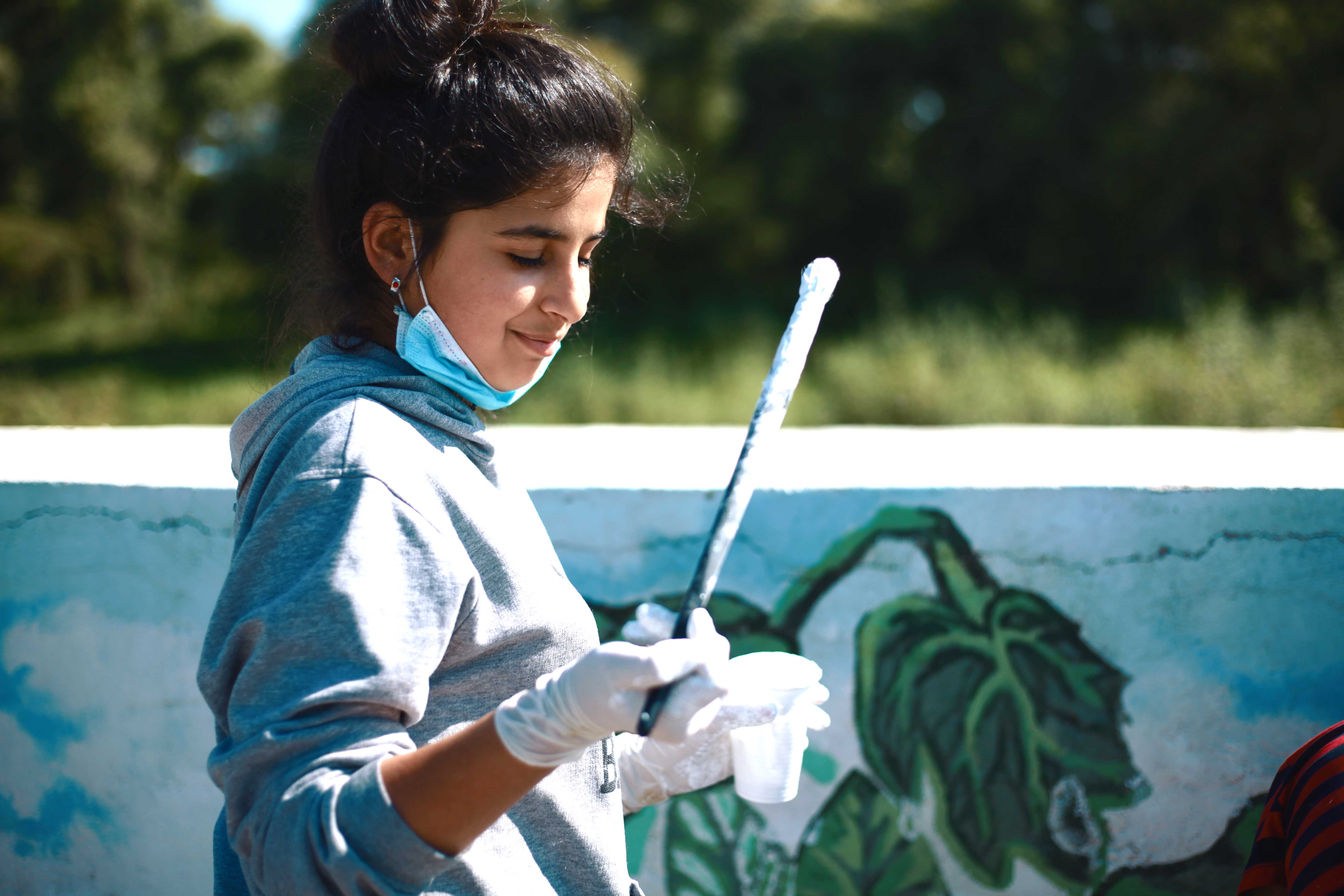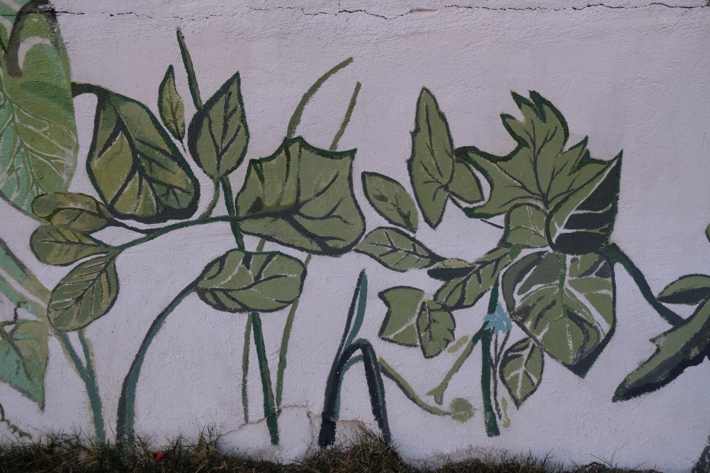 Fiecare pas de pregătire a necesitat perseverență, răbdare și multă dăruire în orele de lucru – de la curățarea zidului și pregătirea suprafeței pentru a fi pictată, la aplicarea stencil-ului creat în 2019 și formarea compoziției inspirându-ne din peisajul uimitor, până la crearea de detalii și culori care să valorifice fiecare frunză și petală.
