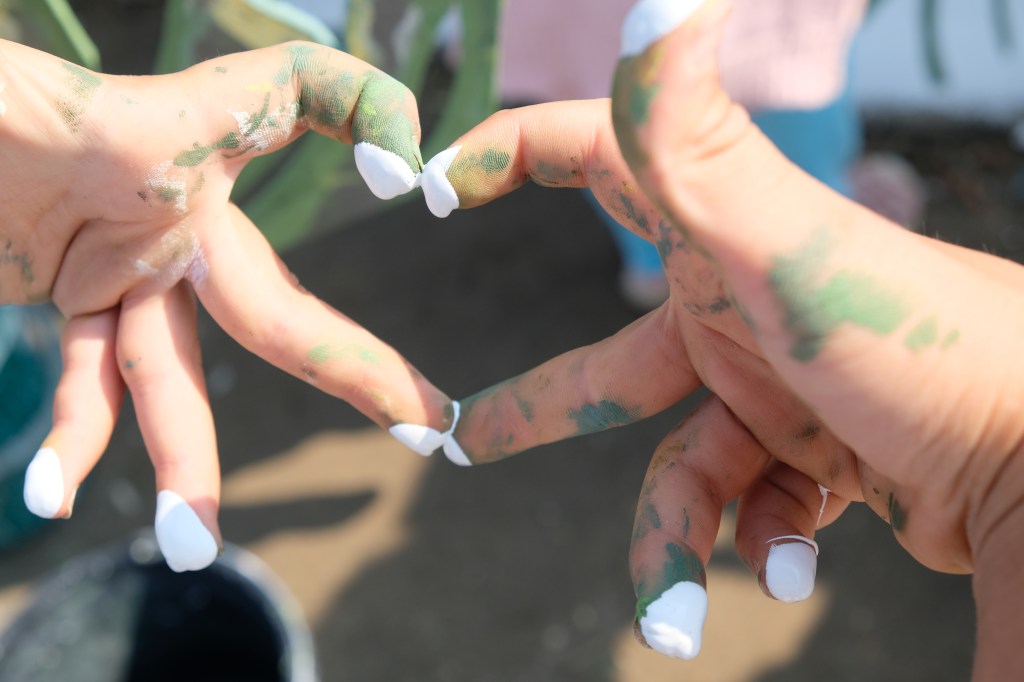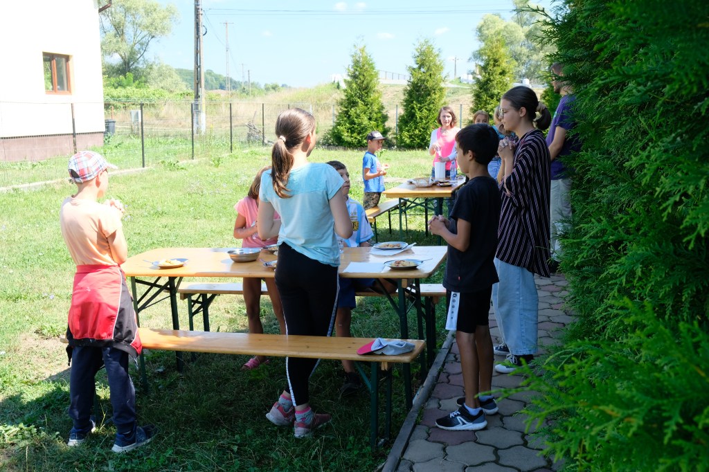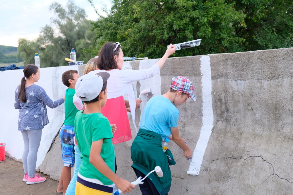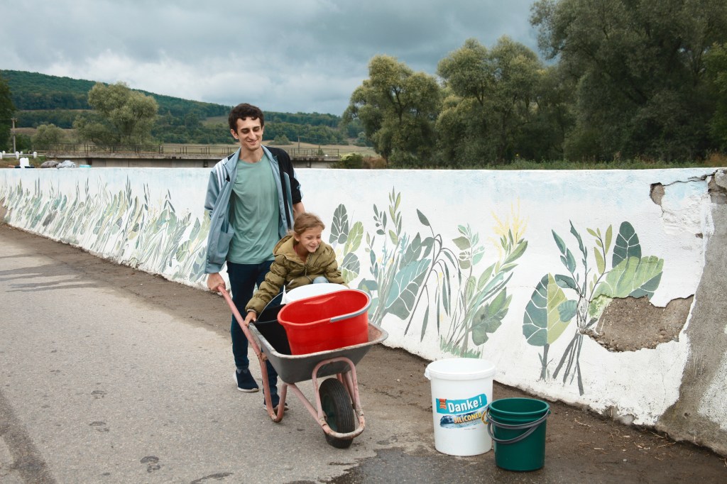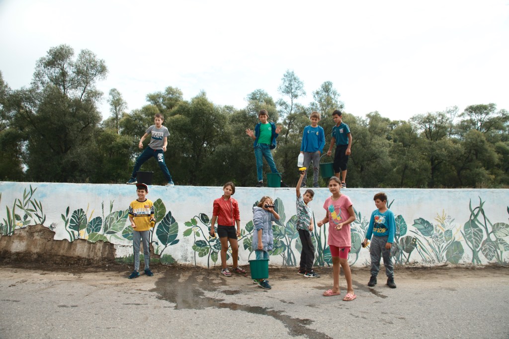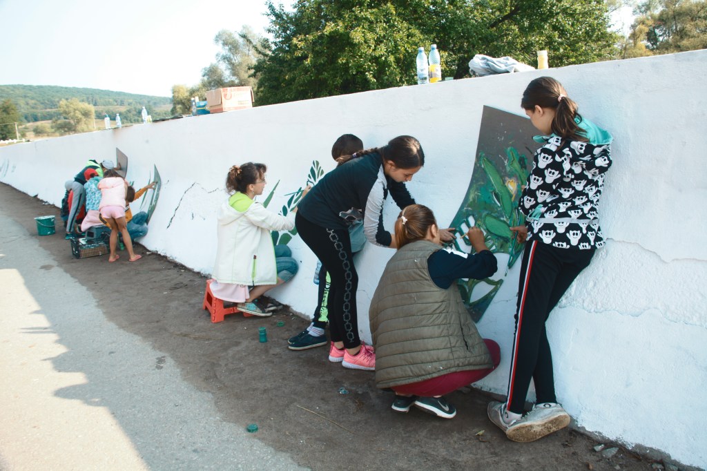 Printre etapele de pregătire a digului de la intrarea în sat, straturi de lavabilă ce acoperă zidul gri, șabloane, pete de culoare și detalii de flori și frunze, programul a fost presărat cu timpuri de joacă, pauze de mâncare, rugăciune, lecții pe teme biblice și momente pentru discuții și sfaturi.